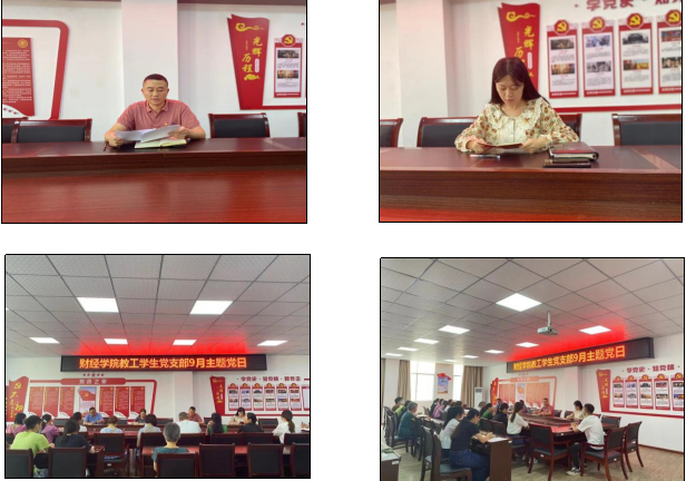 首先,党支部书记庹江子带领大家学习了《党章》中的第四章和第五章内容,深入学习了党的地方组织具体职权、会议举行期限、选举所需条件;学习了党的基层组织成立条件与规定、任期年限、基本任务以及党支部的具体职责。接着,由党总支书记艾海涛领学习近平在省部级主要领导干部“学习习近平总书记重要讲话精神,迎接党的二十大”专题研讨班上发表重要讲话,强调在全面建设社会主义现代化国家、向第二个百年奋斗目标进军的新征程上,全党必须高举中国特色社会主义伟大旗帜,坚持以马克思主义中国化时代化最新成果为指导,坚定“四个自信”,坚定不移推进中华民族伟大复兴历史进程。我们要牢牢把握新时代新征程党的中心任务,提出新的思路、新的战略、新的举措,继续统筹推进“五位一体”总体布局、协调推进“四个全面”战略布局,踔厉奋发、勇毅前行、团结奋斗,奋力谱写全面建设社会主义现代化国家崭新篇章。最后,党风廉政教育,艾书记宣读了学习学校关于做好2022年教师节、中秋节、国庆节期间纠“四风”树新风工作的通知、中央纪委国家监委公开通报的十起违反中央八项规定精神典型问题作为例子来告诉全体党员要以案为戒,不断增强党性观念,严守纪律规矩,树立清正廉洁的新风正气。