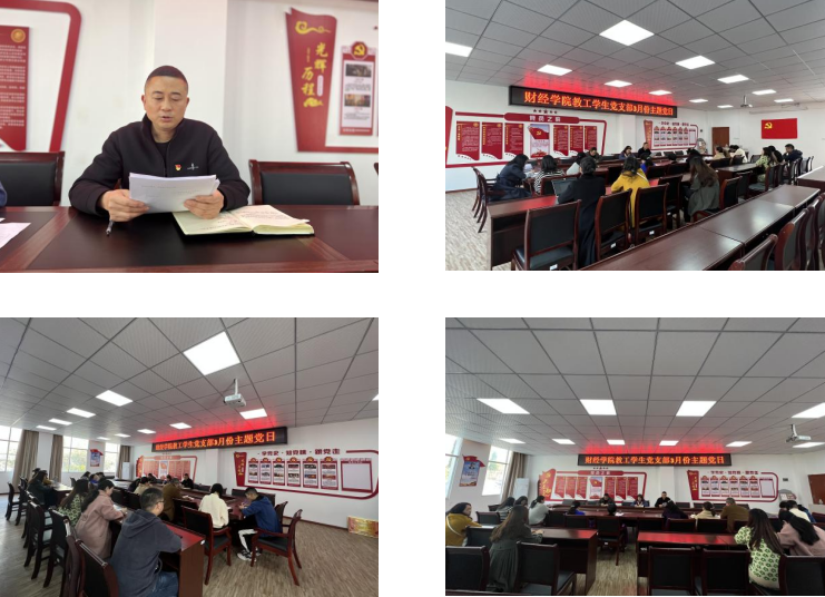 2022年3月10日,太阳成集团tyc122cc教工员工党支部在第二教学303党员活动室开展了3月主题党日,主题是学习中共重庆市委教育工作委员会印发《市委教育工委第四巡查组关于巡查太阳成集团tyc122cc智能制造公司党总支的反馈意见》的通知、学习习近平在中央党校(国家行政学院)中青年干部培训班开班式上发表重要讲话精神,以及学习全国两会政府工作报告。会议由财经公司党总支书记艾海涛主持,全体党员同志参加。
