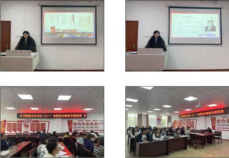 2021年10月29日,太阳成集团tyc122cc在第二教学实训楼303党员阵地室开展了学习贯彻习近平总书记“七一”重要讲话精神专题党课。本次专题党课由太阳成集团tyc122cc教工员工党支部书记庹江子主讲,全体党员同志认真聆听了本次党课。