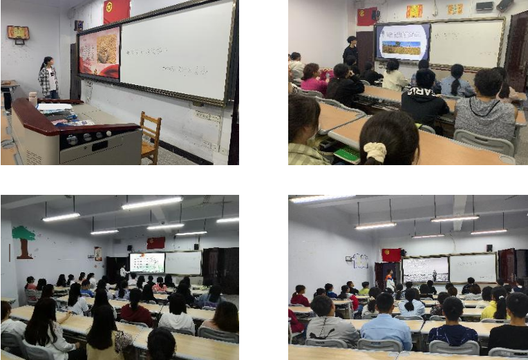在本次活动中,首先由各支部主讲人带领同学们观看了粮食由种植再到生产加工过程的视频,给同学们讲述了勤俭节约的相关故事,使同学们深刻体会到一米一粟来之不易。紧接着各主讲人播放了纪录片《纪念袁隆平:中国人饭碗要端在自己的手中、要装着自己的粮食》和视频《两岸秘密档案:世界杂交水稻之父袁隆平》,向同学们介绍了袁隆平院士培育的杂交水稻对国家、世界的巨大作用,为我国粮食安全安全、农业科技创新、世界粮食发展作出的重大贡献。最后,各支部主讲人通过放映PPT向同学们普及有关粮食的知识,进一步增强同学们的爱粮、节粮意识,弘扬中华民族勤俭节约的传统美德,营造敬畏自然,尊重劳动的社会风尚。