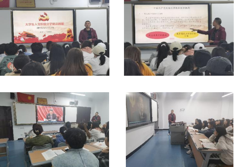 2021年5月6日晚上,财经公司党总支书记艾海涛在二教304教室,为第29期业余党校入党积极分子培训班上了第三次党课,有90多名入党积极分子参加了培训。
