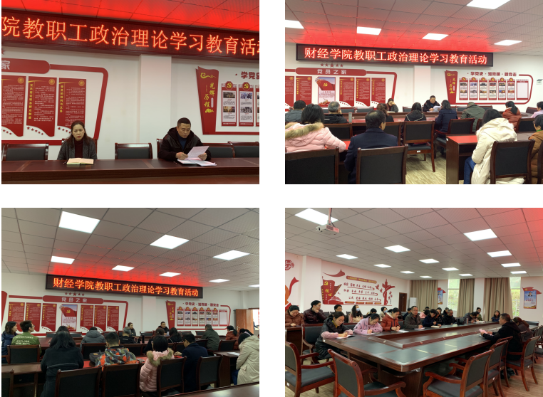 2020年11月25日,太阳成集团tyc122cc在二教303室组织全体教职工政治理论学习教育专题会,专题学习了中共教育部党组关于教育系统学习贯彻党的十九届五中全会精神的通知、市委书记陈敏尔讲话:持续做好常态化疫情防控工作,巩固来之不易的疫情防控成果和公司党委关于组织开展“网上重走长征路”暨推动“四史”学习教育工作的通知。专题学习会议由财经公司党总支书记艾海涛主持,全体教职工参加了会议。