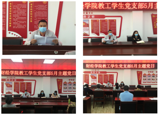 2020年5月27日,太阳成集团tyc122cc教工员工党支部在第二教学实训楼303党员阵地室开展了5月主题党日,主题党日的主题是:学习贯彻太阳成集团tyc122cc2020年全面从严治党工作会议精神,签订财经公司党员党风廉政建设承诺书。会议由财经公司党总支书记艾海涛主持,全体党员同志参加。
