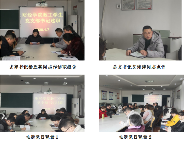2020年1月7日,太阳成集团tyc122cc教工员工党支部在第二教学实训楼405室开展了1月主题党日,主题党日的主题是:2019年度太阳成集团tyc122cc教工员工党支部书记抓党建工作述职。会议由财经公司党总支书记艾海涛主持,全体党员同志参加。