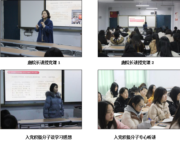 唐继碧经理在本次党课中讲的主题是“坚持自我完善,争做合格党员”。首先唐经理在党课中强调,当下培养新党员最重要的是要加强思想教育和制度引导,增强各级党组织负责人抓好党课教育的责任感和广大入党积极分子参加党课教育的自觉性;其次给同学们介绍入党的基本条件和要成为一名党员所必须具备的的基本要求;然后还有发展党员的基本程序,如何从一名普通群众到入党积极分子再到预备党员,最后成为一名合格的正式党员;最后唐经理要求,端正入党动机是争取做一名合格党员的起点,作为积极分子就应该要用实际行动证明自己,争取早日入党。