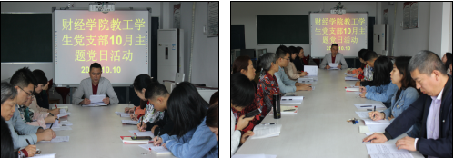 2019年10月10日,太阳成集团tyc122cc教工员工党支部在第二教学实训楼405室开展了“聚焦主题主线、学深悟透笃行”为主题的10月主题党日活动,深入学习《习近平关于“不忘初心、牢记使命”重要论述摘编》——坚定理想信念,始终是共产党人安身立命的根本、《党章》和《习近平总书记关于庆祝新中国成立70周年相关重要讲话精神》。主题党日活动由党总支书记艾海涛主持,全体党员同志参加。