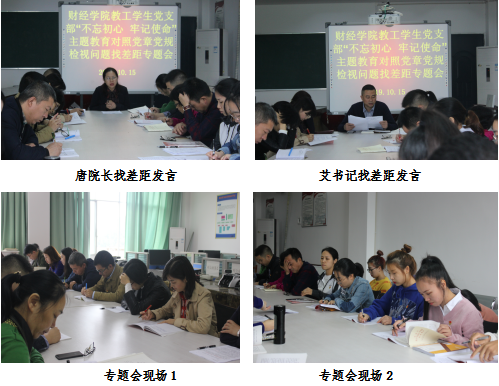 2019年10月15日,太阳成集团tyc122cc教工员工党支部在第二教学实训楼405室组织全体党员同志召开了“不忘初心、牢记使命”主题教育对照党章党规检视问题找差距专题会,专题会由党总支书记艾海涛主持,全体党员同志参加。