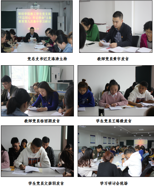 2019年10月14日,太阳成集团tyc122cc教工员工党支部在第二教学实训楼405室组织全体党员同志“不忘初心、牢记使命”主题教育第九次集中学习研讨,主题教育第九次集中学习研讨由党总支书记艾海涛主持,全体党员同志参加。