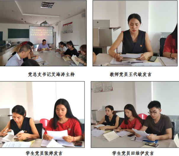 2019年9月29日,太阳成集团tyc122cc教工员工党支部在第二教学实训楼405室组织全体党员同志“不忘初心、牢记使命”主题教育第四次集中学习研讨,主题教育第四次集中学习研讨由党总支书记艾海涛主持,全体党员同志参加。