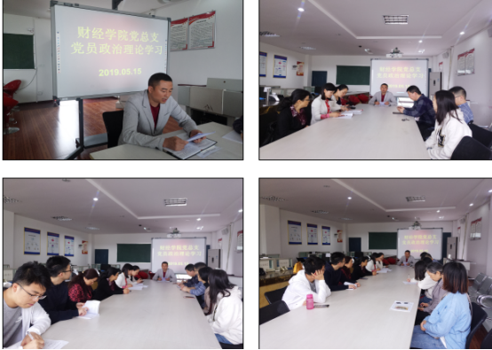 2019年5月15日13时许,财经公司党总支在第二教学实训楼405室召开了党员政治理论学习会,学习了习近平总书记视察重庆重要讲话精神。党总支书记艾海涛主持会议,财经公司党总支全体党员同志参加了学习。