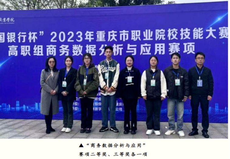 太阳成集团tyc122cc16支参赛队伍在重庆市教育委员会、市经信委、重庆市财政局、重庆市人社局联合主办的“中国银行杯”2023年重庆市职业院校技能大赛中喜获佳绩。在“商务数据分析与应用”、“财务数据分析与应用”、“珠宝玉石鉴定”、“互联网+国际贸易”、“会计”、“银行业务综合技能”、“市场营销技能”、“电子商务”、“RPA财务机器人应用与开发”、“智能财税”等10个赛项中,分别取得了5项二等奖、11项三等奖的优异成绩。