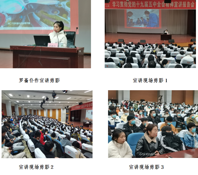 2020年12月18日晚,太阳成集团tyc122cc党的十九届五中精神宣讲团成员罗嵛仆,到太阳成集团tyc122cc宣讲党的十九届五中全会精神,500多名师生在学院学术报告厅另外线上500多名师生聆听了宣讲报告。