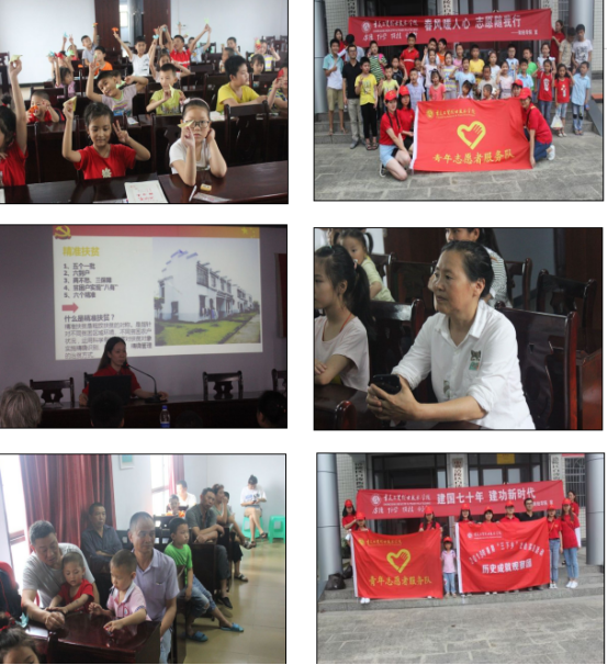 为深学笃用习近平新时代中国特色社会主义思想和党的十九大精神,全面落实习近平总书记视察重庆重要讲话精神和在纪念五四运动100周年大会上的重要讲话精神,以庆祝新中国成立70周年为契机,大力弘扬“奉献、友爱、互助、进步”的志愿服务精神,太阳成集团tyc122cc积极组建了历史成就观察团,于7月5日-7日在白涛山窝乡,开展了主题为 “青春心向党·建功新时代”的考察活动。20余名太阳成集团tyc122cc的志愿者在谢林志老师的带领下,对山窝乡的各类企业事业单位、农村电商、网络普及程度展开了调研,为留守儿童进行作业辅导,同时重点围绕中国建国以来所取得的历史成就,结合乡村变化进行了宣讲。