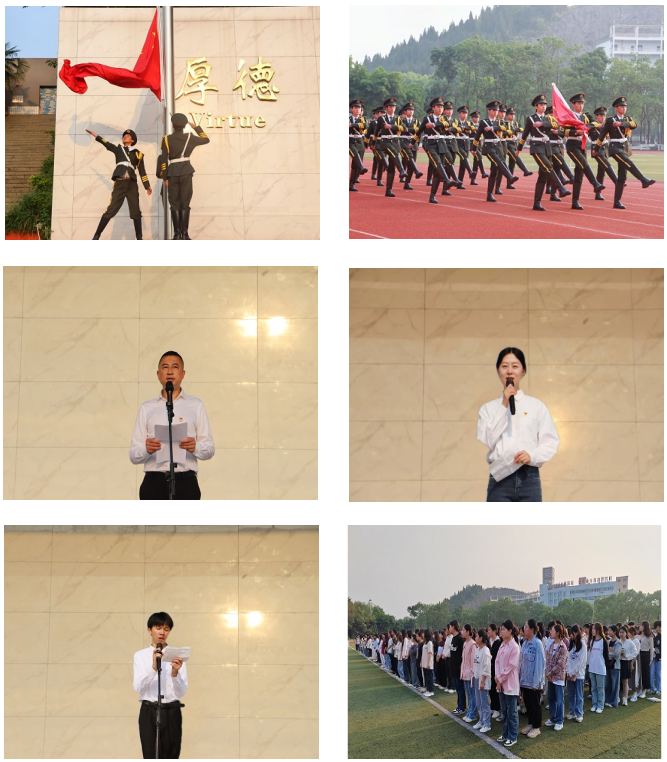首先,随着庹主任宣布升旗仪式开始,国旗护卫队的同学们迈着刚劲有力的步伐,护卫着神圣的五星红旗走向升旗台,伴随着国旗的冉冉升起,全体师生行注目礼,齐唱国歌。礼毕后,员工代表孙凡丁同学以“青春心向党,共筑国家安全防线”为主题作了国旗下演讲。他讲到我们每一位青年学子都应该准确领悟国家安全的重要性,增强国家安全意识,共筑国家安全防线。