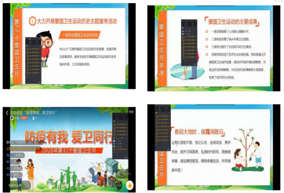 在主题班会中,各班主讲人详细讲解了新型冠状病毒防护知识和个人防护知识,介绍了爱国卫生运动的历史背景,指出了爱国卫生运动对于疾病防控的重大意义,希望大家将健康卫生知识的传播和宣传与热爱祖国、热爱家乡、热爱生活相结合,做一名合格的“健康人”。通过线上交流,同学们对“爱国”、“卫生”及“运动”有了新的理解和认识,增加了健康知识储备,提高了健康素养和防范疫情的警惕性。