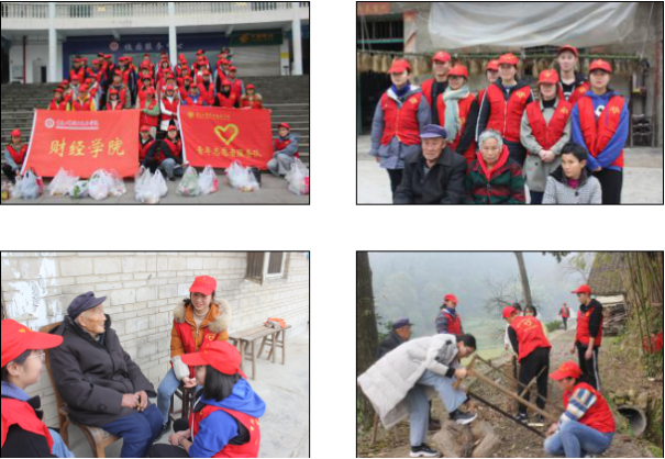 在“慰问老人”志愿者活动的当天早上7:30,同学们早早的来到了集合地点,脸上挂满了笑容,大家对今天的活动满怀期待,都想尽自己的一份绵薄之力,为农村的老人们带去欢乐,送去温暖。8点整左右,到达目的地后,同学们以分配好的小组为单位,到提前踩好点的老人家中去,活动中,有陪老人聊天的,有帮老人干活劈柴的,还有为老人做饭的。在交谈过程中,同学们讲笑话逗老人们开心,甚至还把自己的老员工活讲述给老人们听。在整个活动过程中,气氛其乐融融,我们用实际行动和真心给老人们带来了心灵上的慰藉,从那些满是岁月痕迹的脸上读出他们的快乐。工贸志愿者们的到来,消除了老人们的一丝孤独感,这一天是特别的,也是难忘的。