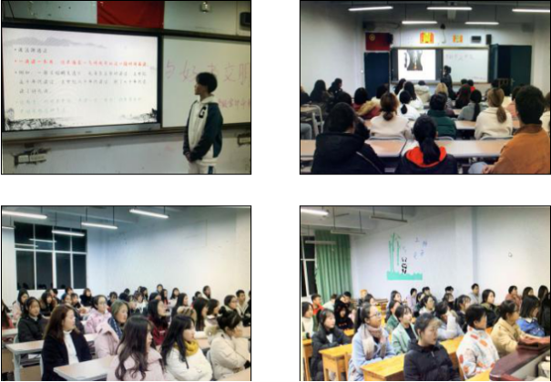 在活动的开始,各个班级的主讲人跟大家分享了自己读书后的一些领悟,譬如:书是人类进步的阶梯,与好书交朋友可以陶冶人的情操,充实人的精神生活,增添人的阅历,丰富人的各种知识等。之后又借助多媒体,向同学们介绍了选读法、精读法、摘读法、粗读法等一些在阅读中比较有用的阅读方法。个别班级还归纳了读书笔记的类型,向同学们讲述怎样才能做好读书笔记。书籍于现在的我们而言,可以说是生活中的必需品,正如莎士比亚所说:“生活里没有书籍,就好像没有阳光;智慧里没有书籍,就好像鸟儿没有翅膀。”读书可以滋润心灵,开启心智。读书可以增长知识,去除无知;提高素养,除去愚昧;充实生活,丰富精神;滋润心灵,减少空虚;淡定从容,明辨是非。