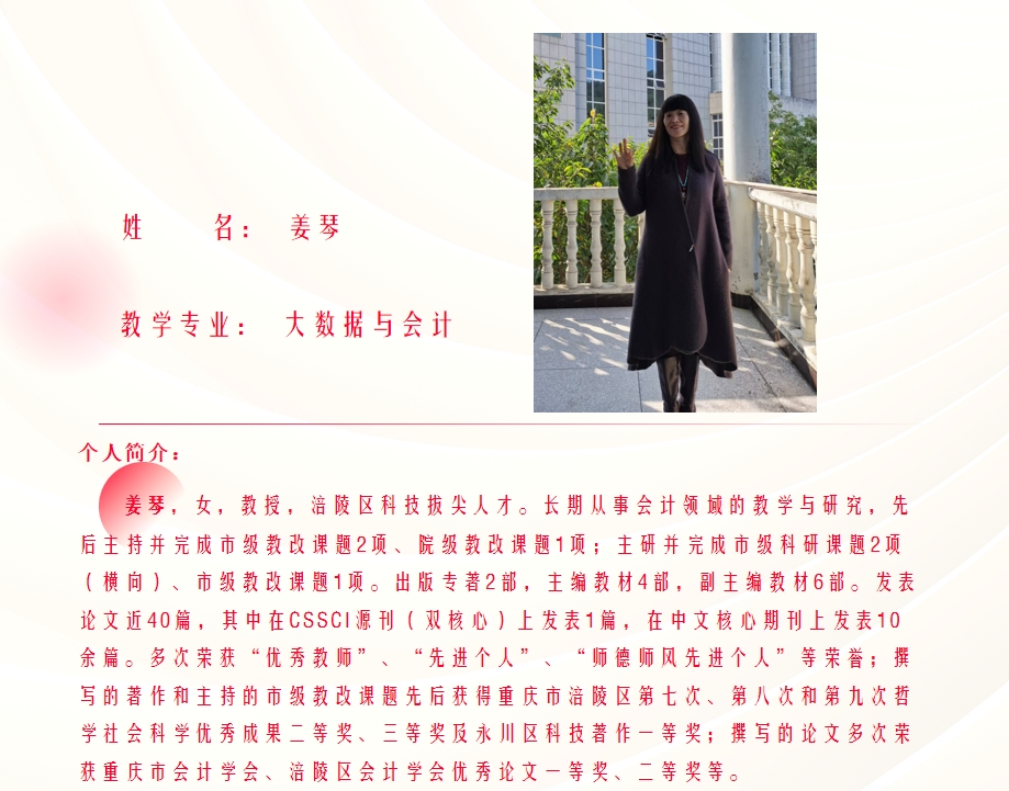 专业教师 >> 教授>>姜琴