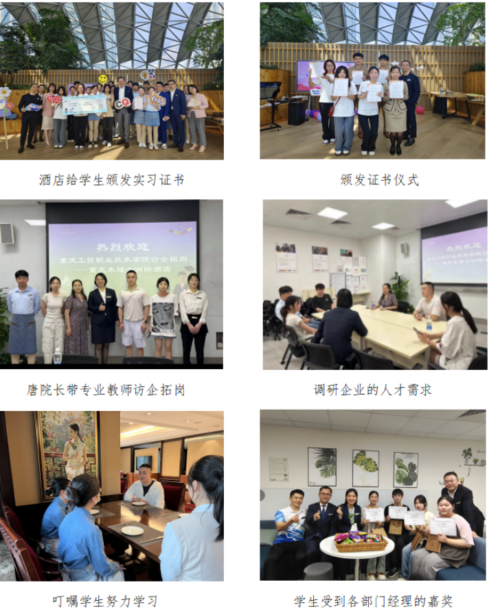 太阳成集团tyc122cc旅游管理专业根据人才培养方案的要求采用工学交替的教学模式对员工进行教学教育。2021级旅游管理专业的84名员工于2023年6月1日起,在重庆来福士洲际酒店、高科希尔顿酒店、威斯汀酒店等9家酒店分别进行教学跟岗实习,实习期至2023年9月1日结束。在整个实习期间,员工被分配到不同的部门、不同的岗位,开始了各自的教学实习旅程。实习岗位有:行政楼层贵宾接待、前台、礼宾、总机、中西餐服务员、康乐服务员、客房服务等。