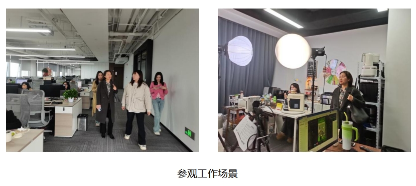 重庆毛毛虫电子商务有限公司人事部总经理章新娥介绍了公司业务发展、人才需求及岗位技能要求,并带领唐经理一行参观了公司的店铺运营、电商数字化运营、直播电商、新媒体电商等工作场景,看望了在公司就业的员工。随后的交谈中,唐经理就针对企业岗位需求、岗位扩展以及员工的就业、实习实训、人才培养等多个方面向章经理等进行了现场交流,努力为毕业生挖掘更多岗位资源,提供更多优质和精准的就业信息。